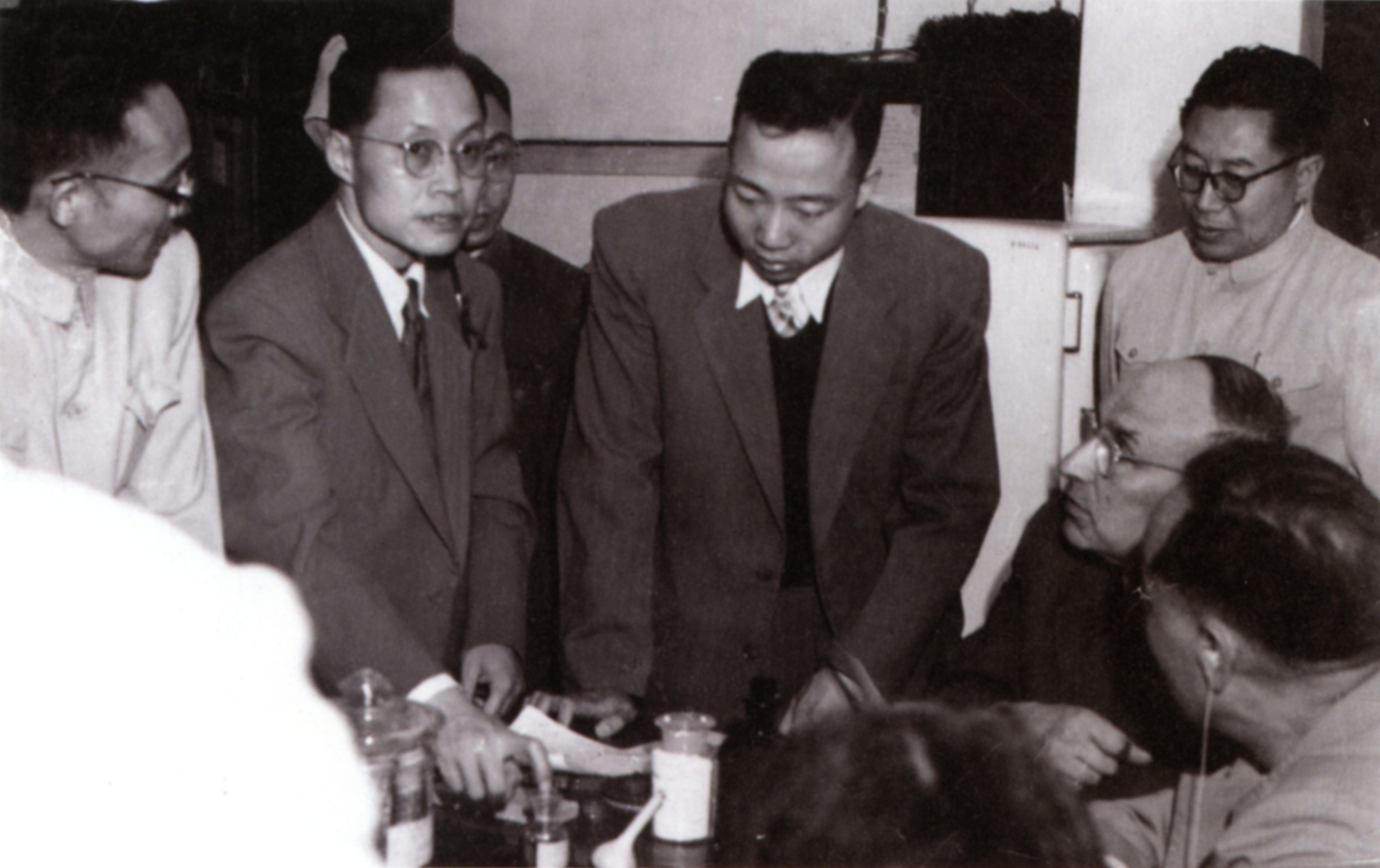 1957年苏联科学院院长涅斯米扬诺夫院士在中科院院长郭沫若的陪同下参观上海有机所