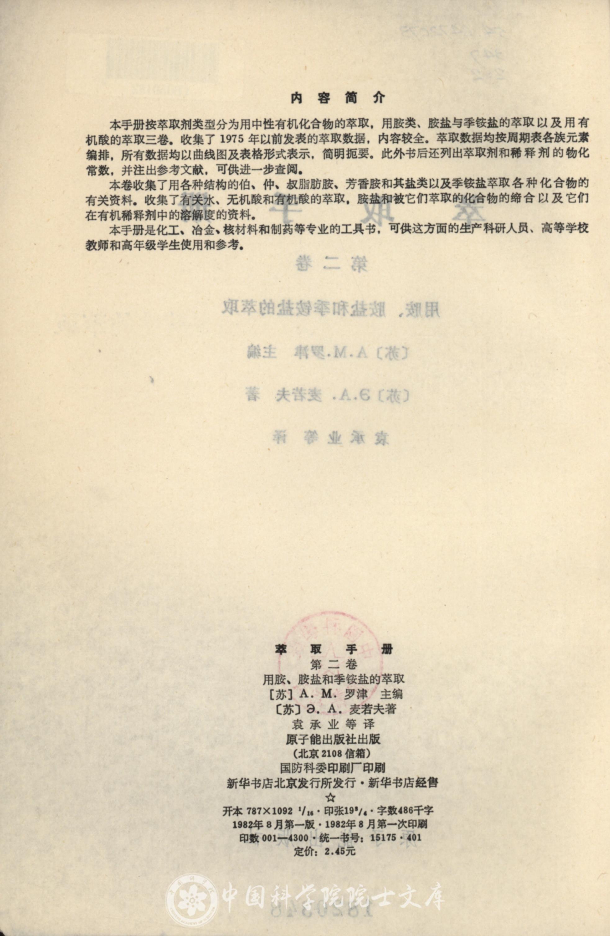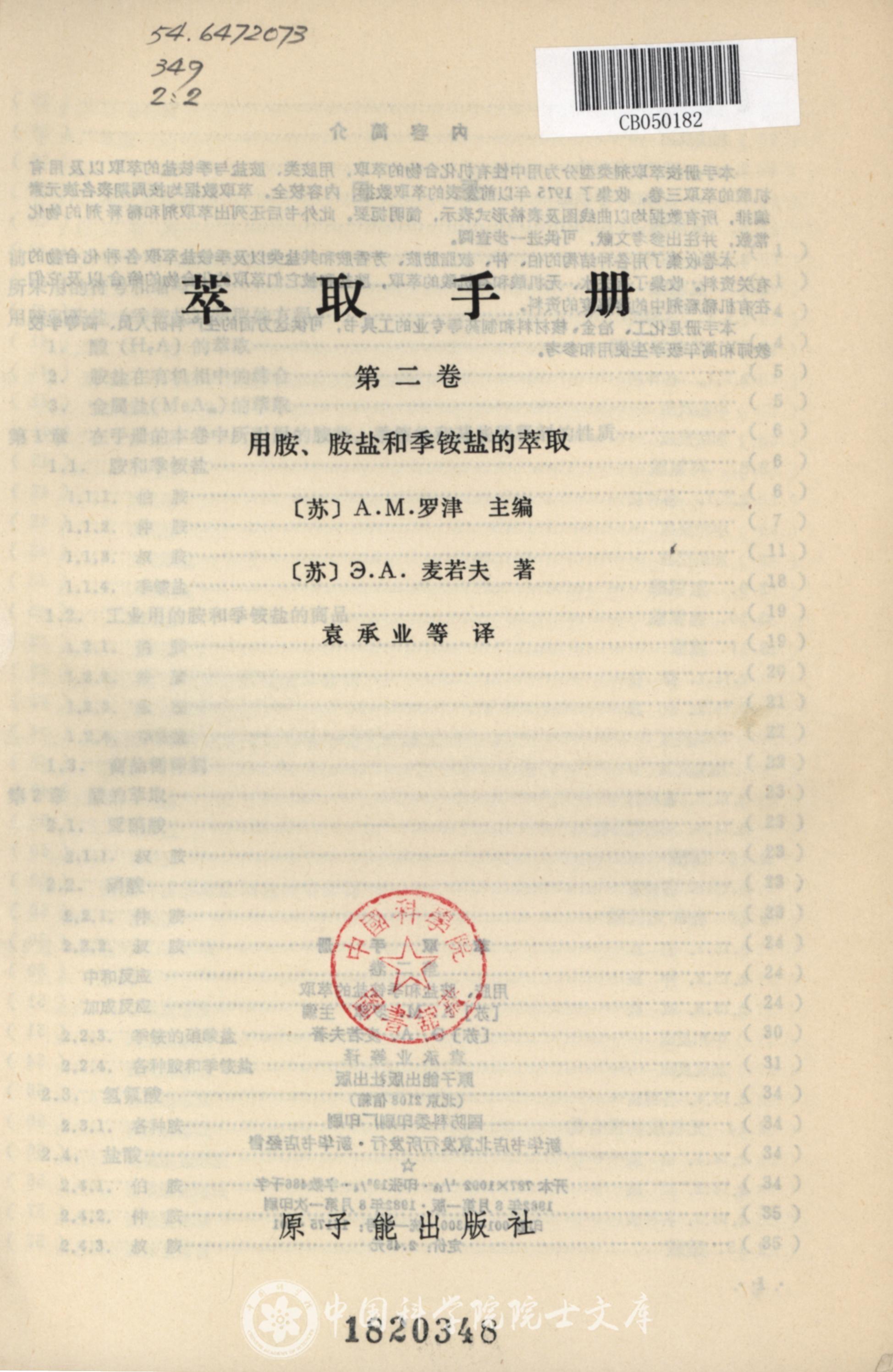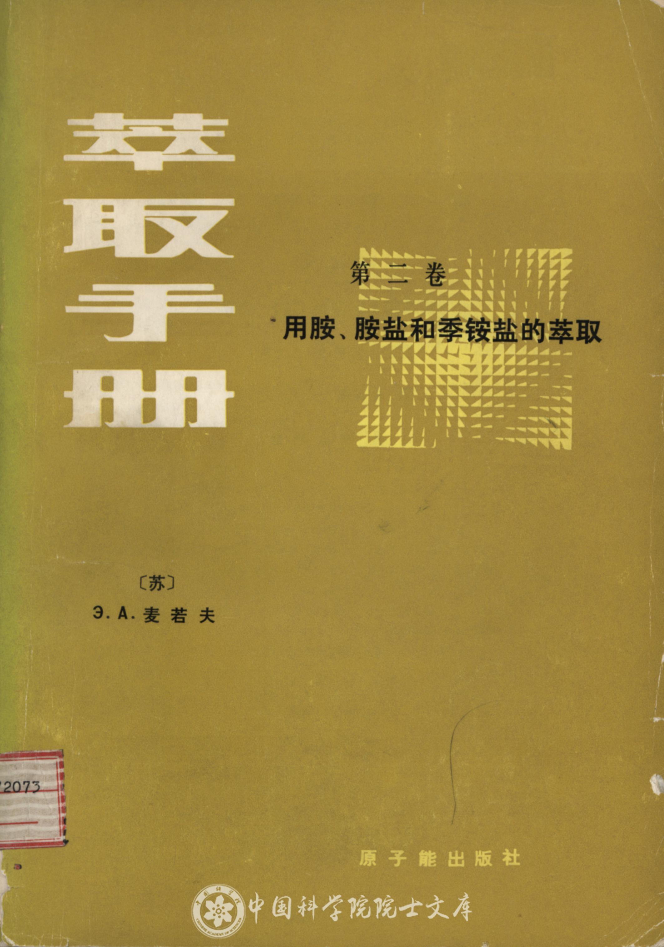 专著:萃取手册(第一卷)用中性有机化合物的萃取