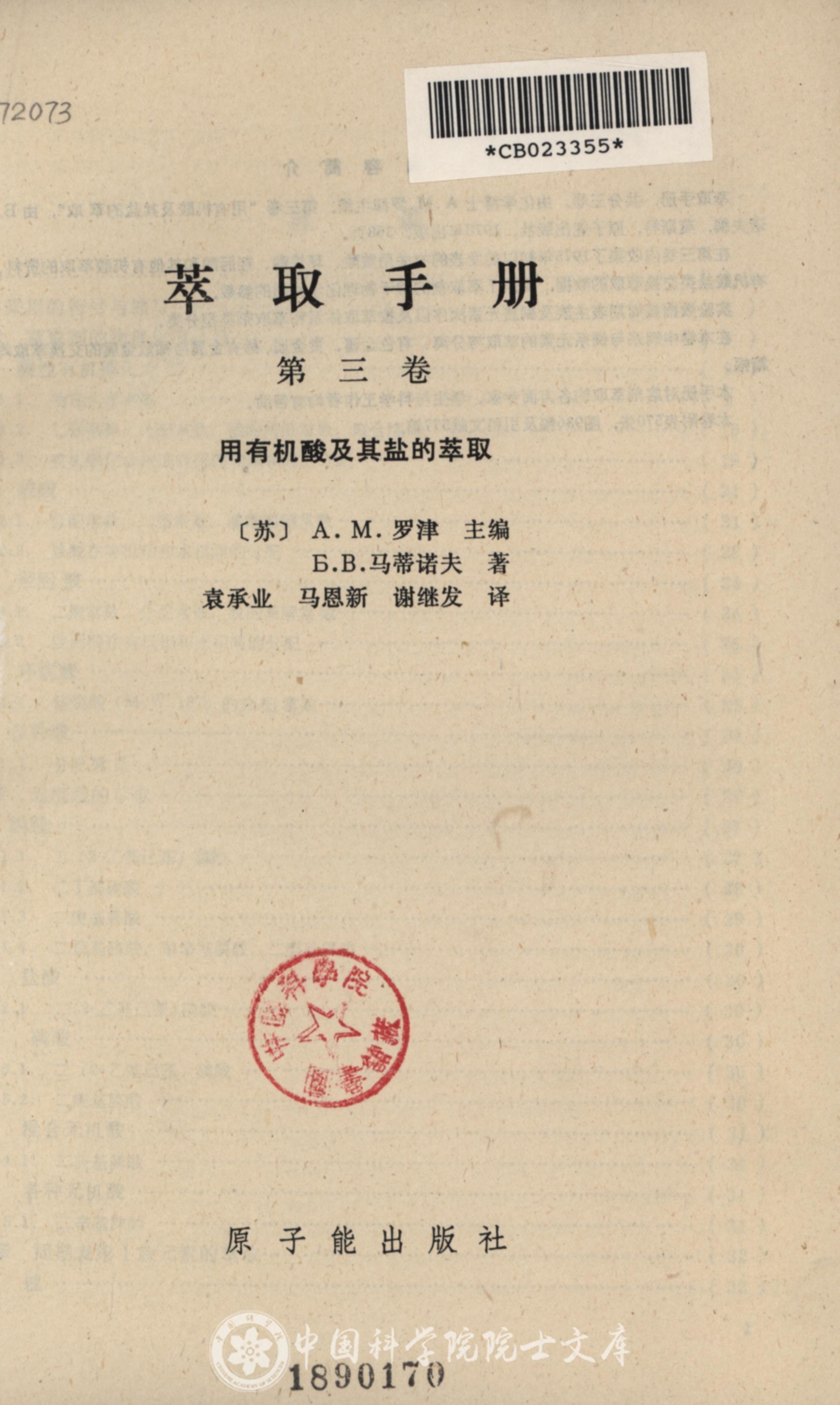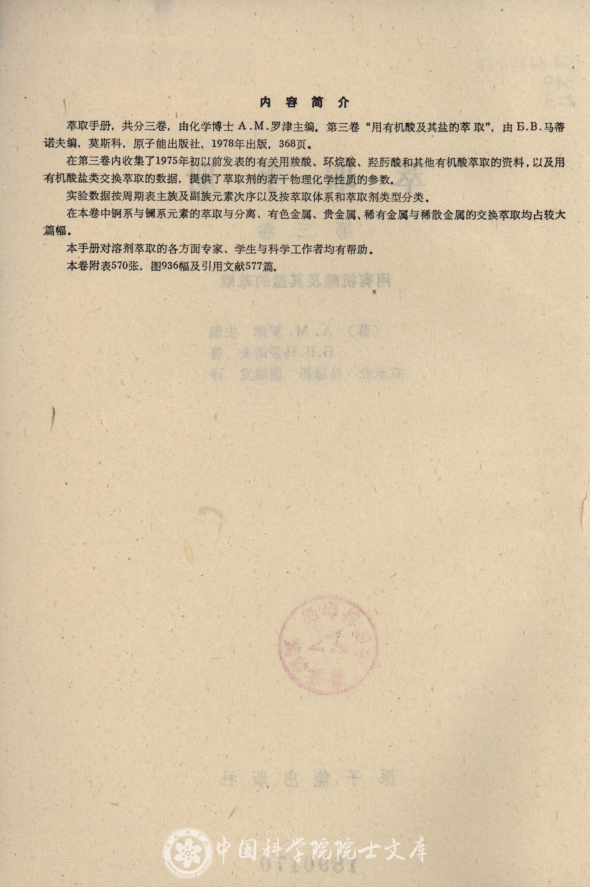 专著:萃取手册(第三卷)用有机酸及其盐的萃取