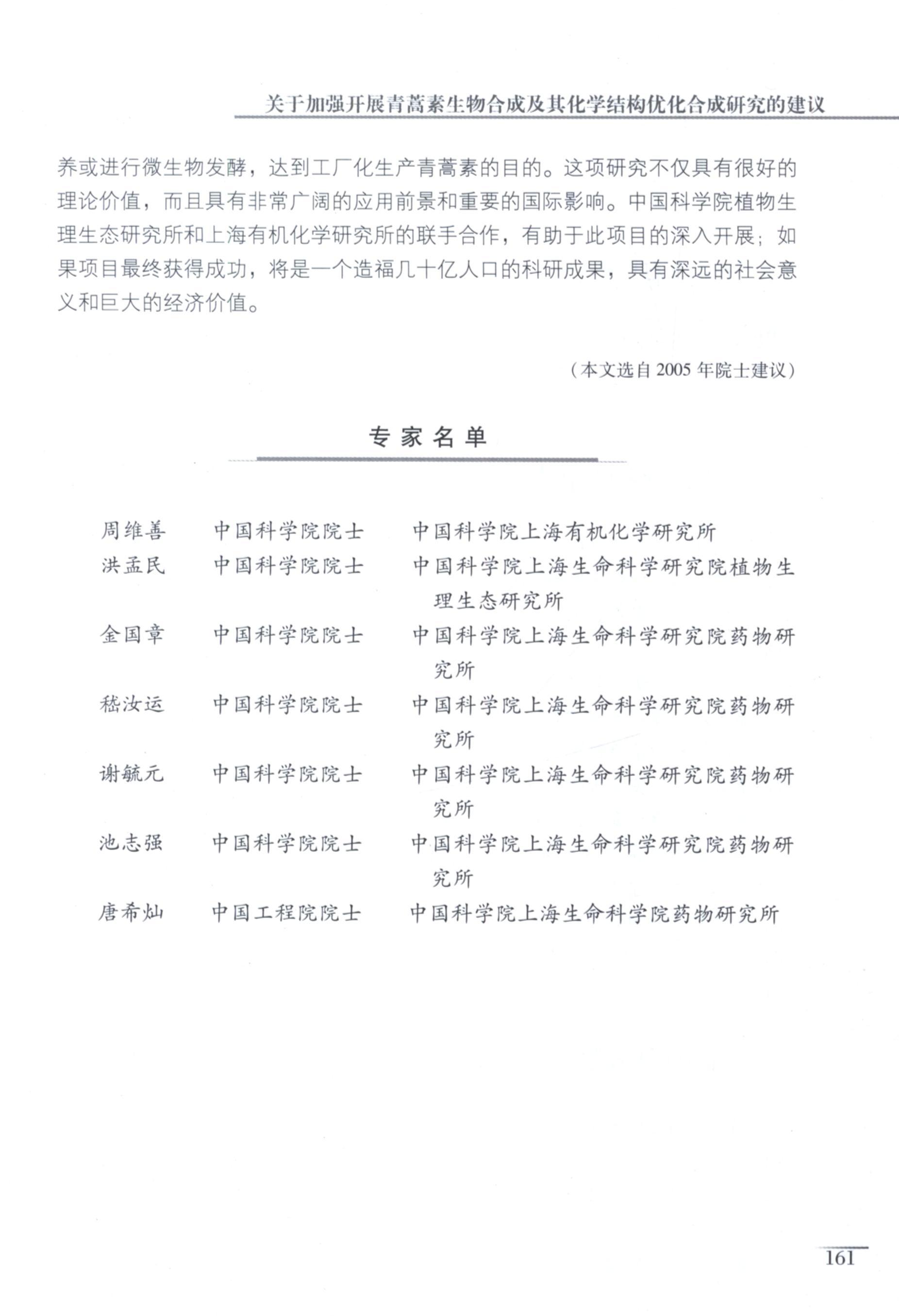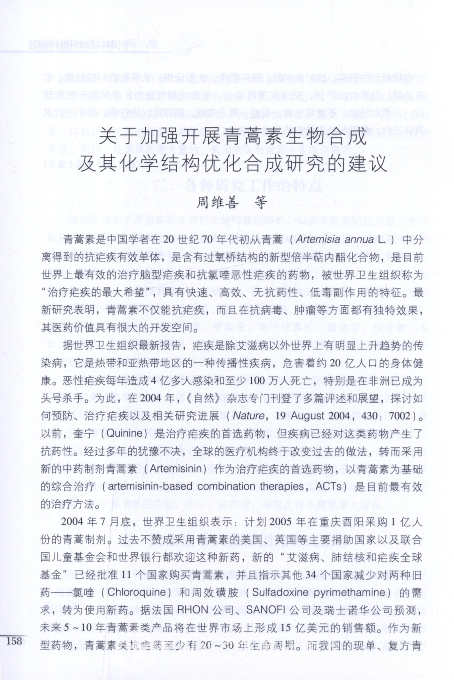关于加强开展青蒿素生物合成及其化学结构优化合成研究的建议