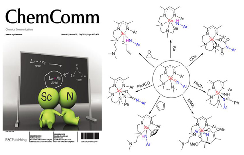 初步反应性能研究发现稀土金属钪末端氮卡宾配合物可以活化元素硒,二氧化碳以及苯基氰,甲基丙烯酸甲酯,异氰酸,环氧丙烷等有机小分子,显示其丰富的反应性能 (Chem. Commun., 2011, 47, 743; Angew. Chem. Int. Ed. 2011, 59, 7677)。该工作揭示通过合适的配体设计是可以合成和稳定含特征稀土金属和主族元素双键的金属配合物,为合成含稀土金属和其它主族元素(C,P等)双键的金属配合物提供了思路,对其反应性能的研究也揭示稀土金属=氮双键独特的性质。