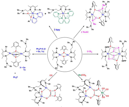 图3. 稀土钪桥联膦卡宾配合物的一系列反应
