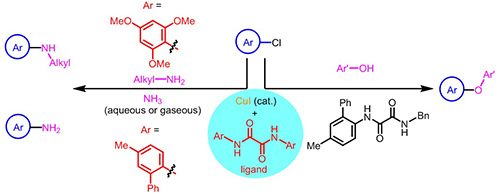 图一、草酸酰胺配体促进的铜催化的芳基氯代物的C-N、C-O偶联反应