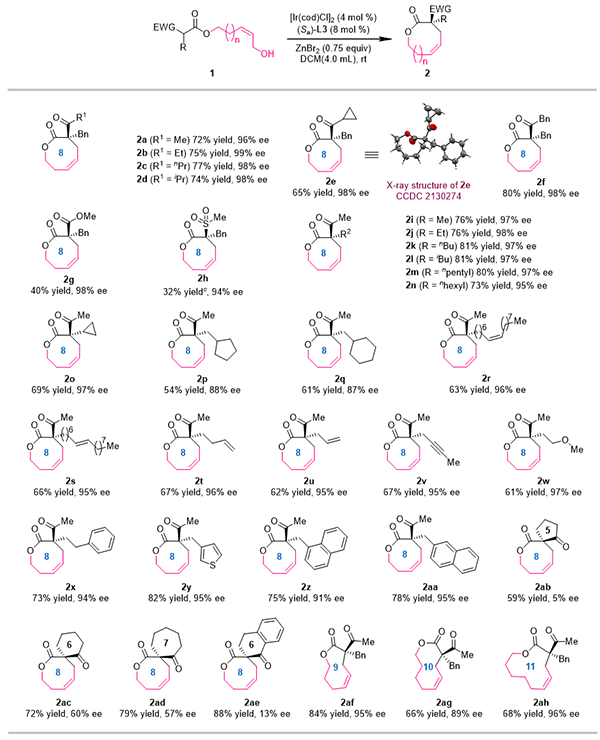 上海有机所在铱催化Z式保留不对称烯丙基取代反应合成中环化合物方面取得进展