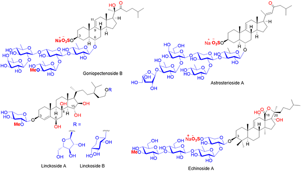 图 俞飚课题组此前完成合成的代表性海洋皂甙