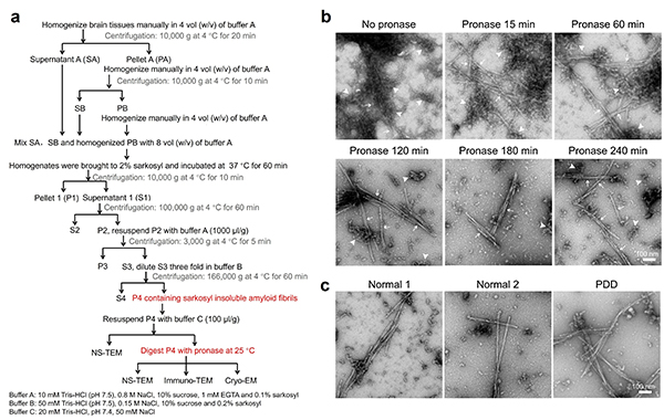 图1 人脑组织蛋白纤维聚集体提取方法及结果