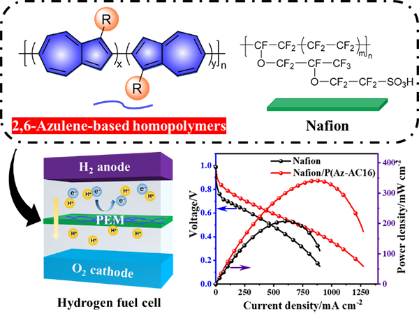 图2 2,6-薁均聚物、Nafion及其在氢燃料电池中的应用