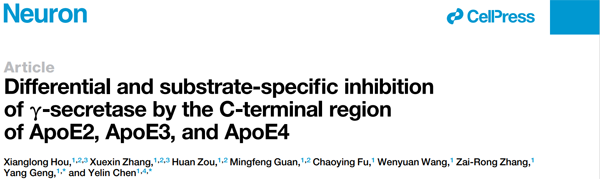 中科院上海有机所生物与化学交叉研究中心陈椰林课题组长期从事阿尔兹海默症致病机理和治疗方面的研究,近日该课题组在《Neuron》杂志上在线发表了题为“Differential and substrate-specific inhibition of γ-secretase by the C-terminal region of ApoE2, ApoE3 and ApoE4”的研究论文(https://doi.org/10.1016/j.neuron.2023.03.024)。该工作发现了非家族遗传性AD的致病风险因子ApoE4与家族遗传性AD致病机理之间的关系,并提供了一个潜在的AD治疗方法。