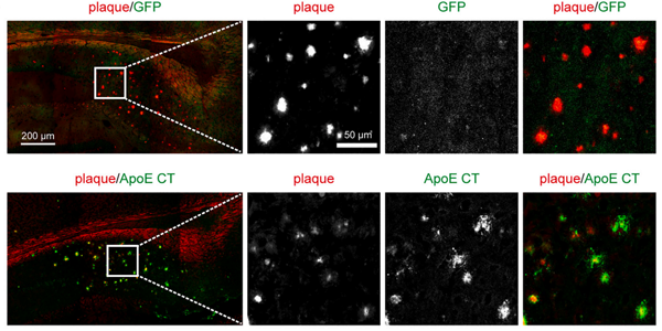 AD患者大脑中的核心病理特征是存在大量由Aβ组成的淀粉样斑块。目前,临床上已经证明使用Aβ抗体清除淀粉样板块可以部分缓解AD的疾病进程,但是该类型疗法的治疗效果非常有限。有一种可能性是因为,目前的抗体治疗仅仅能清除已经从细胞中分泌出来的Aβ及其在细胞外聚集而成的淀粉样斑块。实际上有证据表明细胞内的Aβ也具有毒性,抗体治疗还无法触达此类Aβ。陈椰林课题组的研究发现ApoE活性区域以高特异性的方式从源头抑制脑细胞内Aβ的生成,并且精准定位于神经元以及淀粉样斑块周边的Aβ高发区域,达到减少淀粉样斑块的目的。