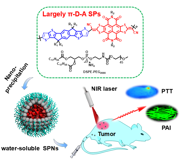 图1. L-π-D-A近红外共轭聚合物及其生物诊疗应用