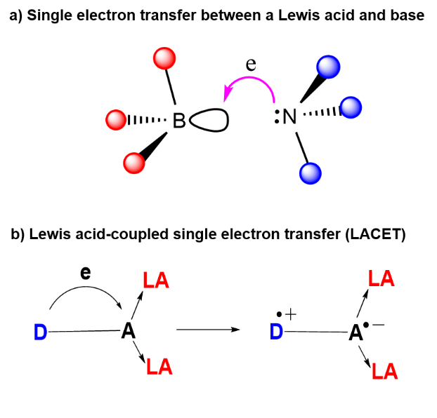 图1 Lewis酸碱单电子转移(a)和Lewis酸耦合电子转移(b)