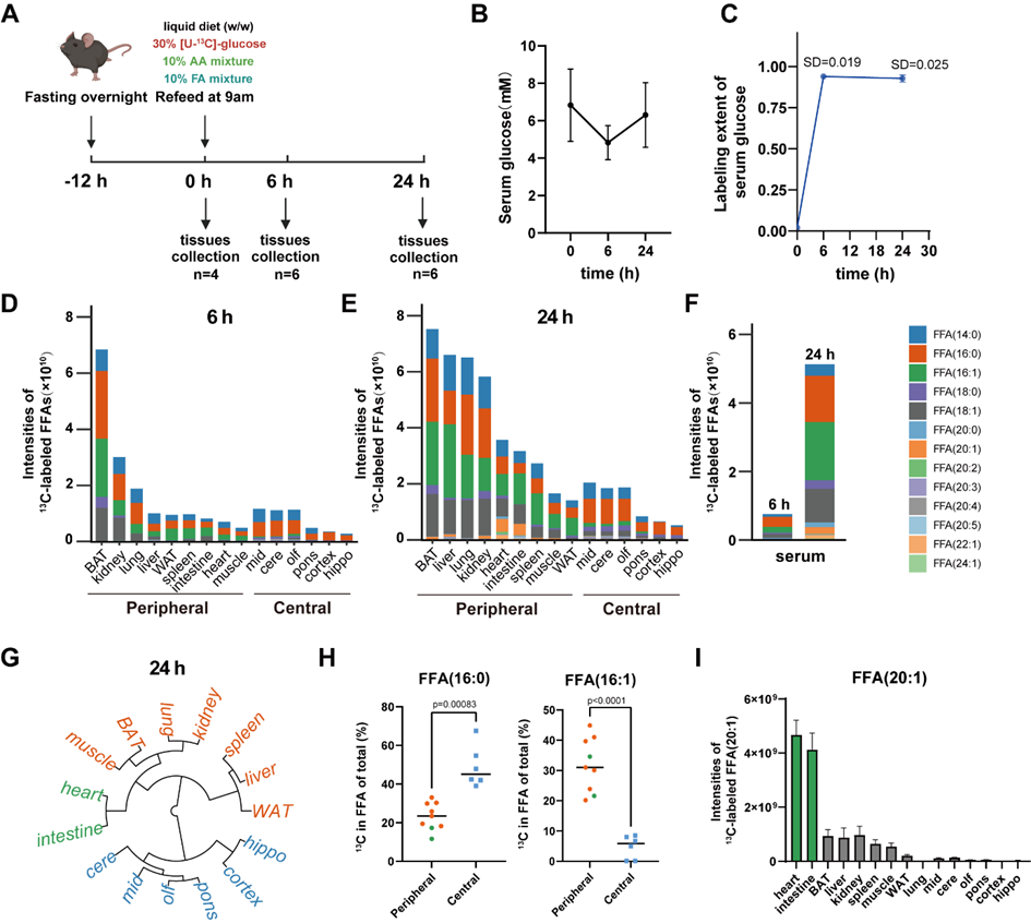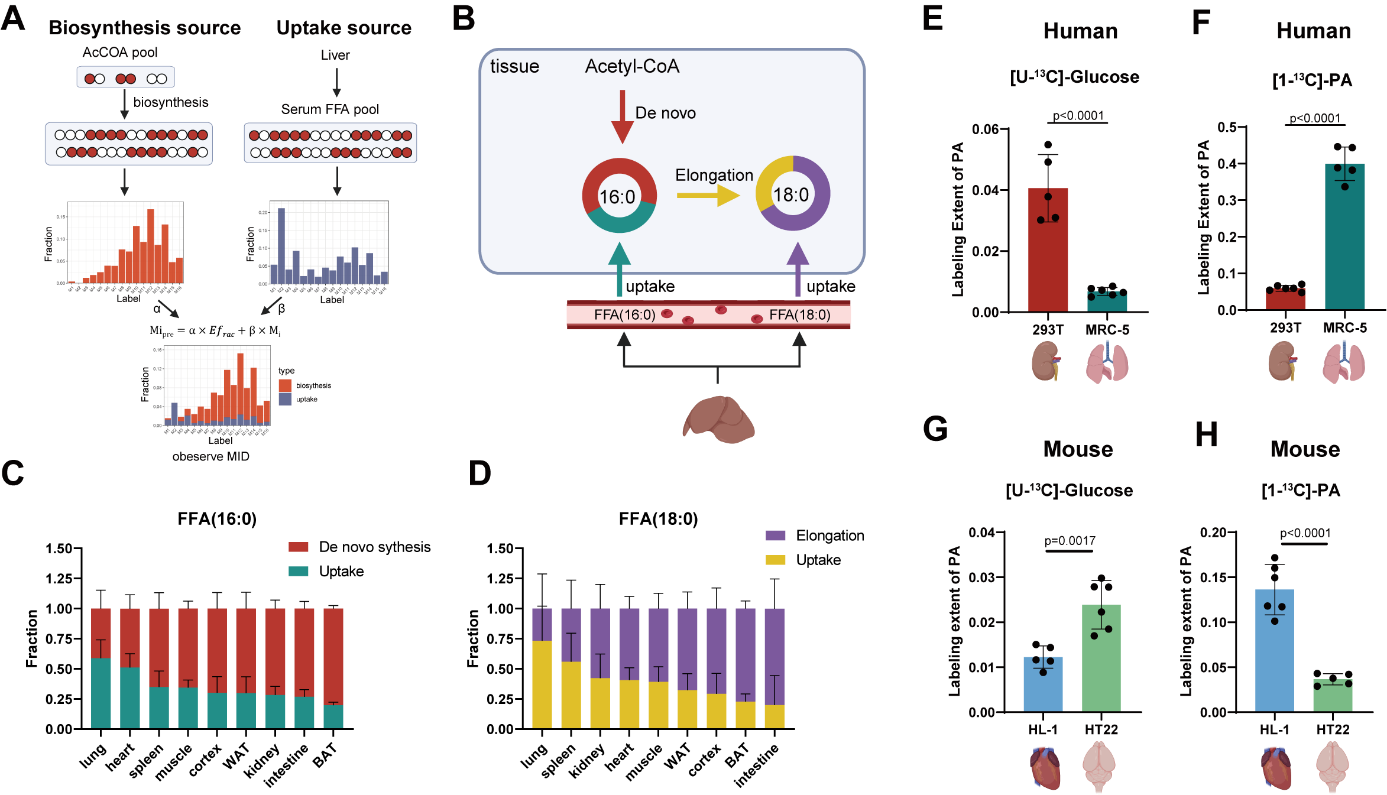 图1. 稳定同位素示踪代谢组学技术揭示脂肪酸合成代谢组织间异质性