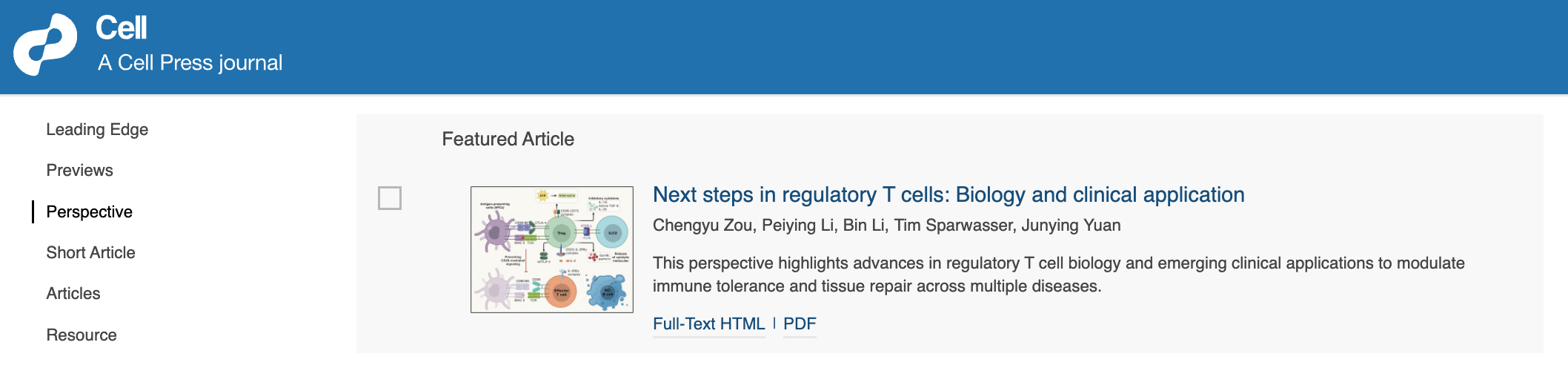 近日,中国科学院上海有机化学研究所生物与化学交叉研究中心袁钧瑛研究员、邹呈雨研究员联合上海交通大学医学院李佩盈教授、李斌教授以及德国美因茨大学 Tim Sparwasser 教授,在《Cell》杂志受邀发表题为《Next steps in regulatory T cells: Biology and clinical application》的观点文章(Perspective)。