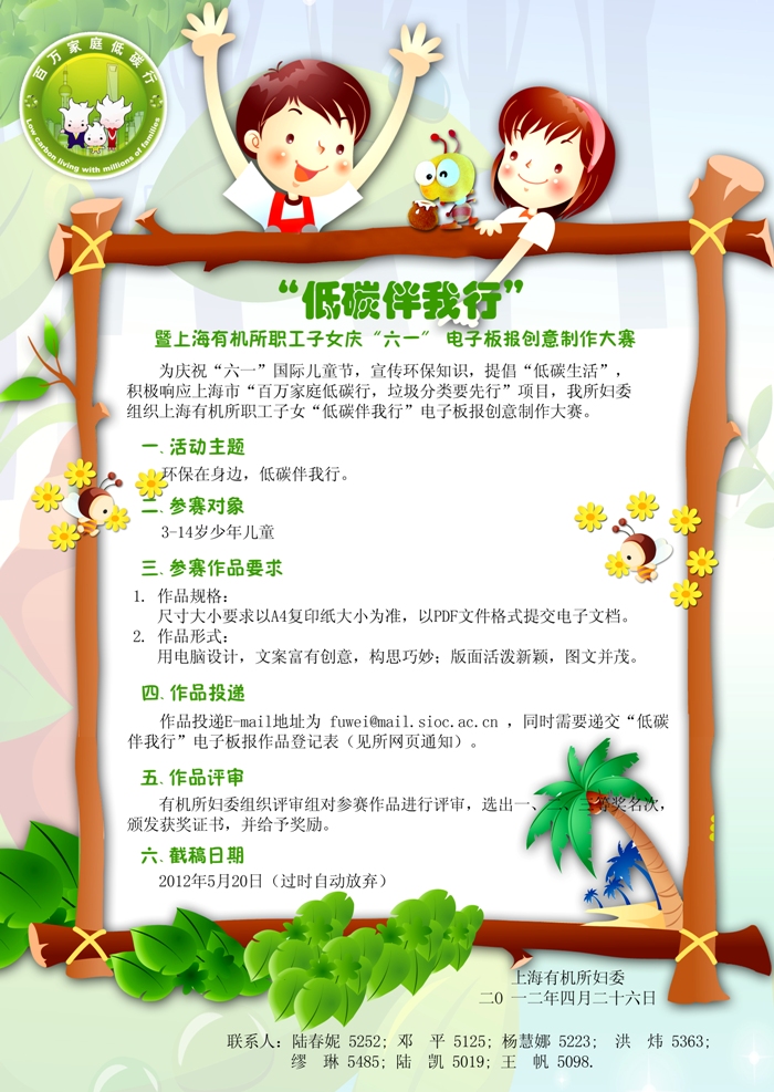 “低碳伴我行”暨上海有机所职工子女庆“六一” 电子板报创意制作大赛通知