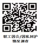 1. 近期职工因私因公离沪请提前向人力资源处报备(联系人:蒋咏文45339,朱影45609)。返沪前,须扫描二维码填写SIOC职工因公/因私回沪情况调查。