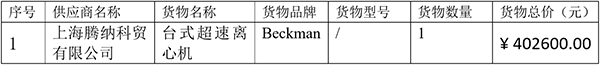 二、项目名称:中国科学院上海有机化学研究所台式超速离心机采购项目