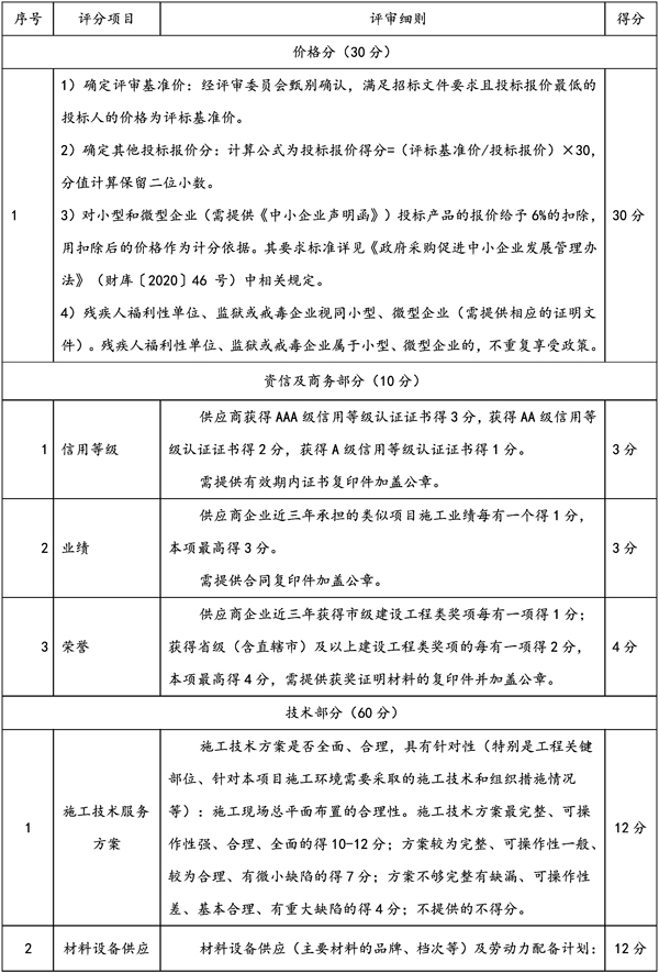 3、评标方法:采用综合评分法。