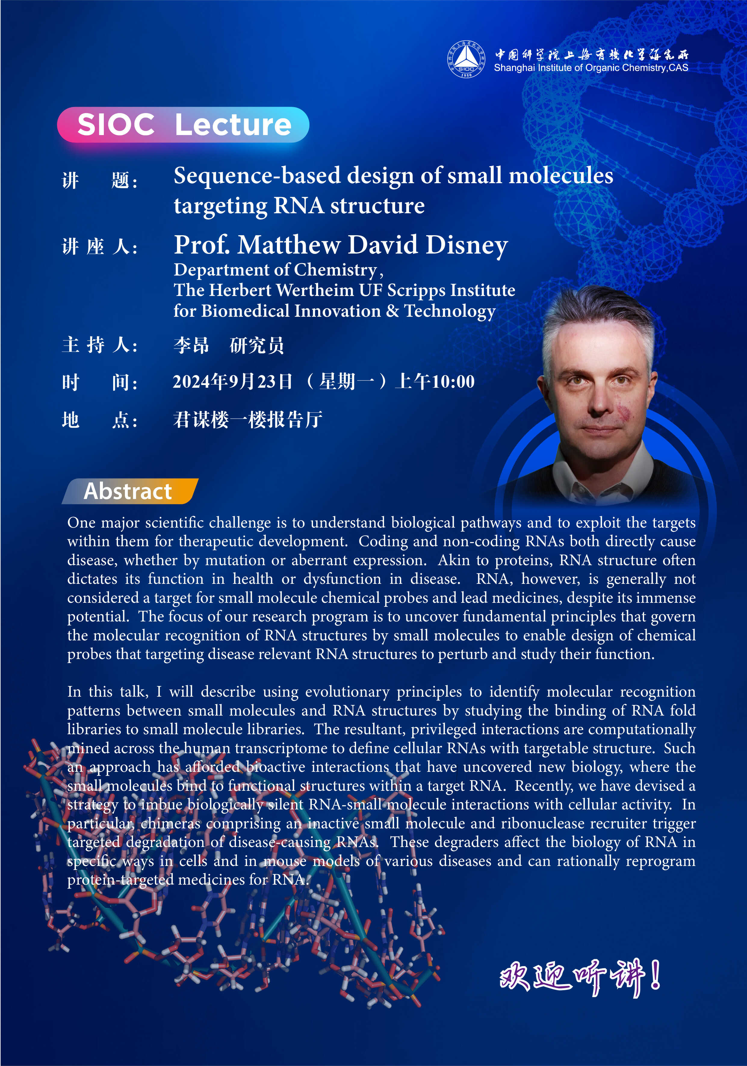 SIOC Lecture: Sequence-based design of small molecules targeting RNA structure