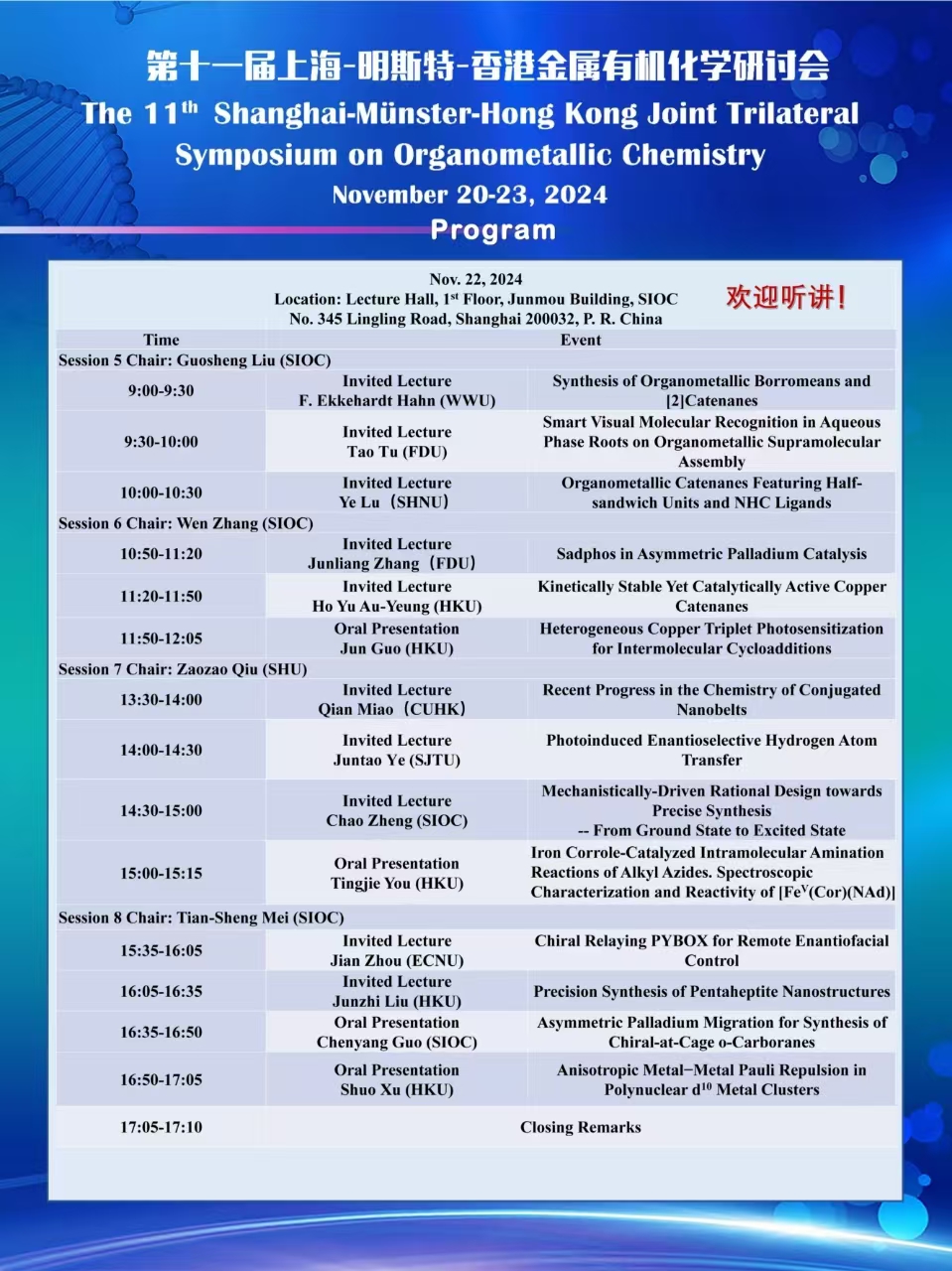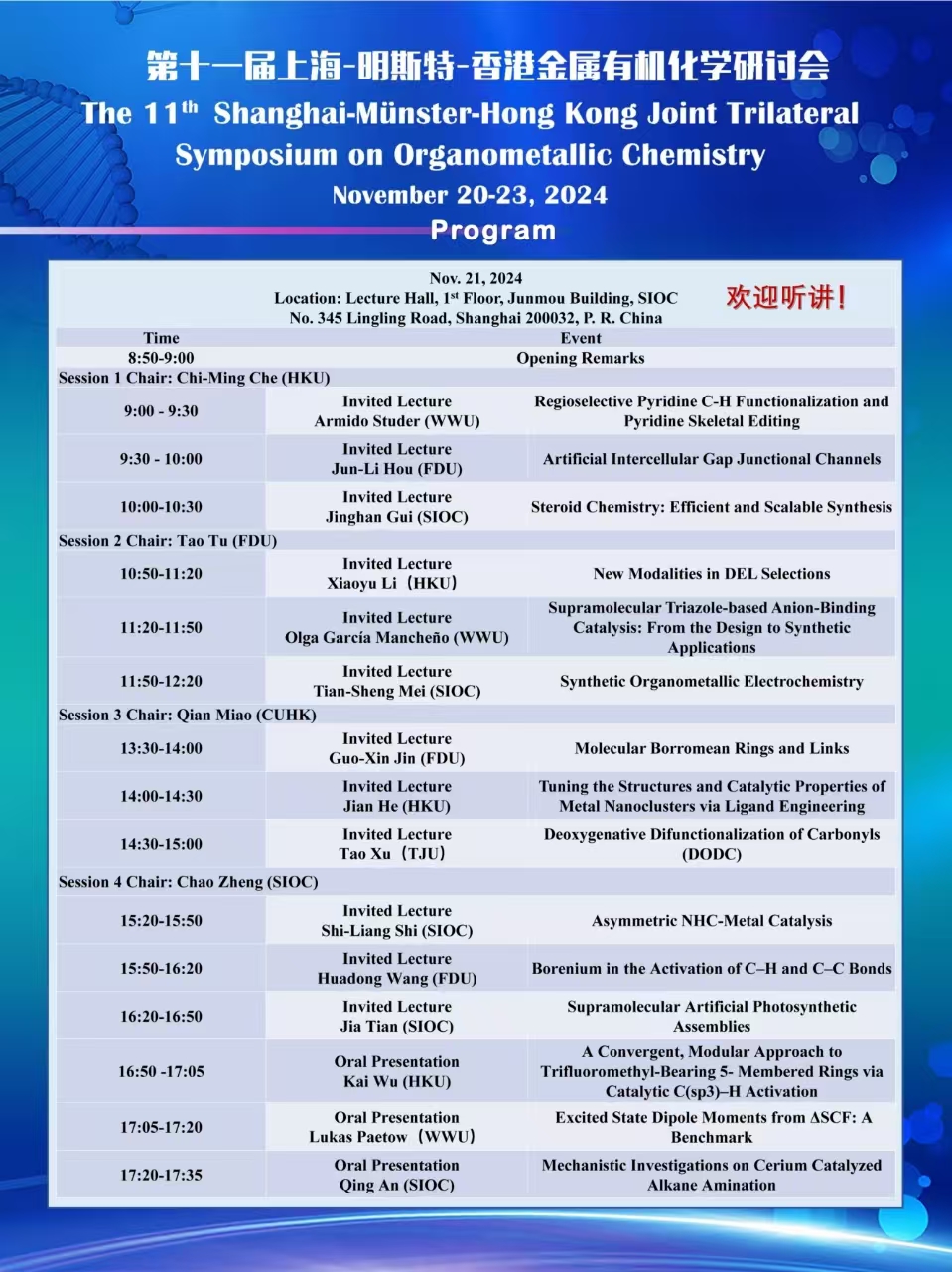 The 11th Shanghai-Münster-Hong Kong Joint Trilateral Symposium on Organometallic Chemistry