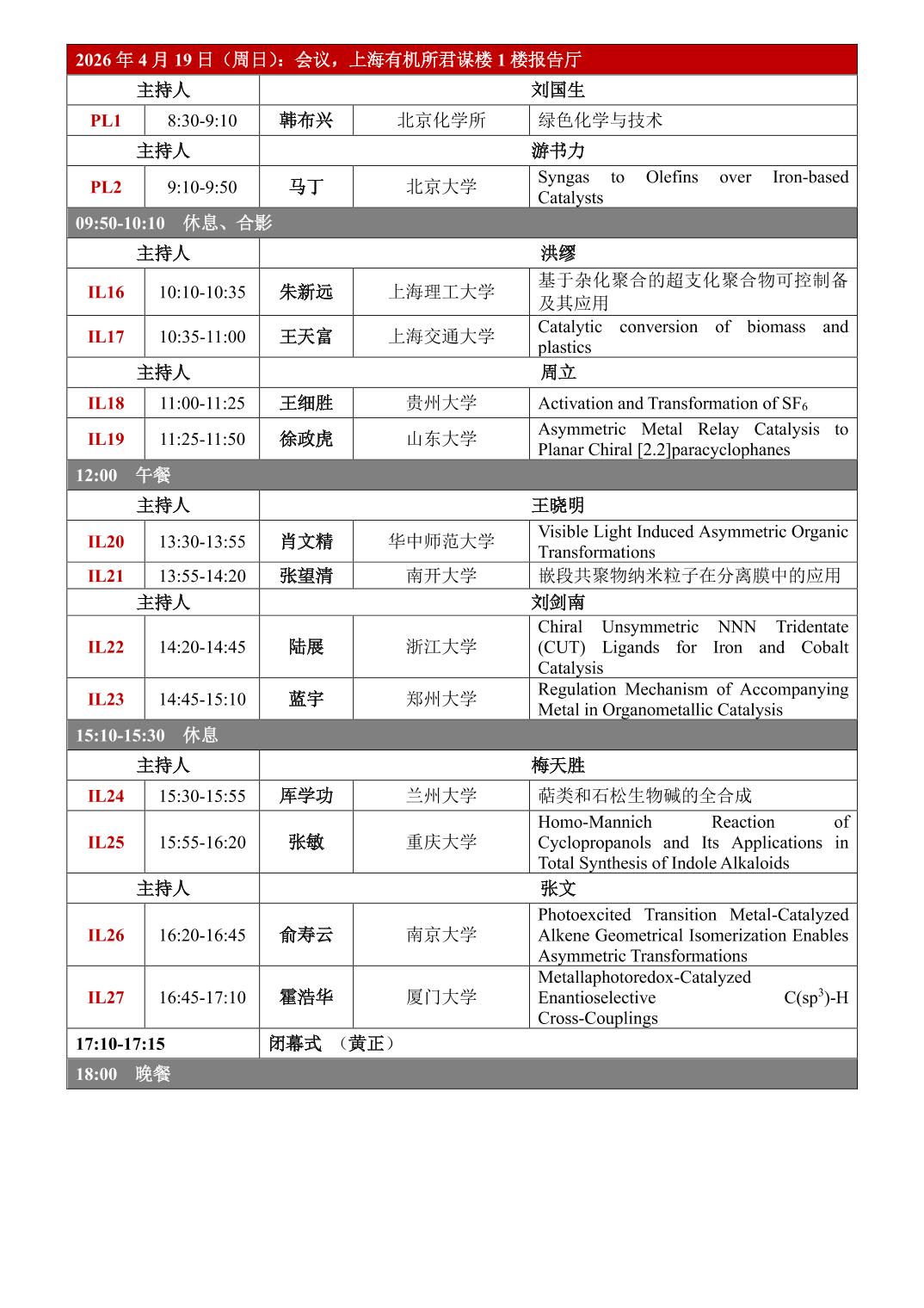 第六届催化与合成浦江论坛日程