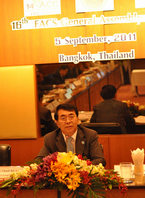 2011年9月5日-9月8日,第十六届亚洲化学联合会代表大会(16th General Assembly of FACS, 16GA)及第十四届亚洲化学大会(14th Asian Chemical Congress)在泰国曼谷诗丽吉皇后国家会议中心召开。中国科学院院长白春礼院士作为亚洲化学联合会主席出席了会议。