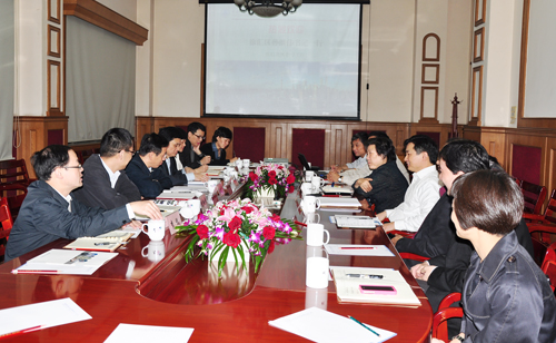 座谈会上,丁奎岭所长代表领导班子对孙继伟书记一行到有机所调研表示热烈欢迎,对徐汇区政府和有关部门长期以来对有机所的关心和支持表示由衷感谢。丁奎岭所长首先向孙继伟书记介绍了有机所科研工作的情况,重点介绍了有机所在围绕国家需求,服务国防建设,服务经济社会发展的科研项目与成果,以及在人才队伍建设方面的成效。丁奎岭所长表示,有机所向来十分重视研究所与徐汇区的合作,有机所位处徐汇区生命科学园区内,有机化学与生命科学领域在很多方面都可以交叉融合,今后仍将一如既往地加强与徐汇区的合作,特别是围绕研究所的“十二五”发展规划和“创新2020”的实施,进一步加强与地方政府和企业合作,在成果转移转化方面取得更多的实质性成果。