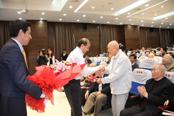 庆贺会上,唐勇副所长、沈兆雷副所长代表有机所向黄维垣先生赠送了《黄维垣院士90华诞志庆集》,以及《中国化学》出版的庆贺论文专辑和鲜花,丁奎岭所长代表美国化学文摘社向黄先生赠送了特编的黄先生论文集摘要。