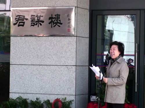 郏静芳在致辞中强调,随着综合实验2号楼的建成,将进一步改善有机所科研环境,为切实抓好“十二五规划”、“创新2020”以及“一三五”战略部署的组织实施奠定了基础,为进一步引进优秀人才,加强人才队伍建设,推进有机所有机化学与相关学科的学术交流和合作,促进化学生物学、材料科学等交叉学科领域的发展创造了空间条件。我们将以“君谋楼”命名为契机,积极推进“一三五”规划的实施,积极承担满足国家需求的重大项目,加强国家需求项目与基础研究、应用基础研究的结合,为推进国家社会、经济的发展做出我们应有的贡献。