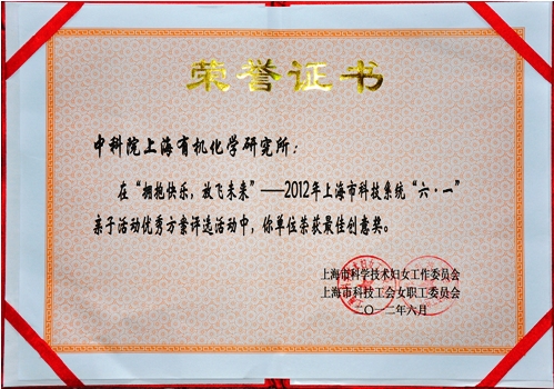 6月21日,上海市科技工会和科技妇工委联合组织了“拥抱快乐,放飞未来”——市科技系统2012年“六·一”亲子活动优秀方案评审交流会,有机所职工子女“低碳伴我行”电子板报创意制作比赛”活动获得了最佳创意奖。