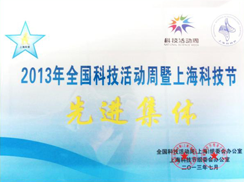 7月10日,在2013年全国科技活动周暨上海科技节总结表彰会上,全国科技活动周(上海组委会)、上海科技节组委会表彰了一批在科技活动周中表现突出的先进集体和先进个人。上海有机所凭借“绚丽多彩的化学世界”为主题的2013年度上海有机所公众科学日科普活动获此殊荣。