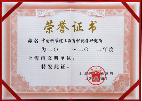 上海有机所荣获2011-2012年度上海市文明单位称号