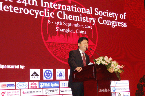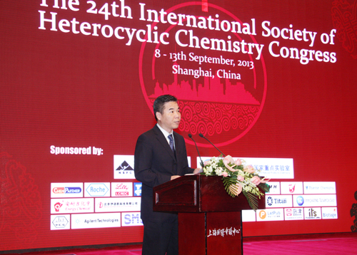 国家自然科学基金委员会化学部主任林国强院士、中国科学院上海分院朱志远副院长,上海有机所所长丁奎岭研究员、副所长马大为研究员分别代表国家自然科学基金委、中国科学院、上海有机所和国际杂环委员会致欢迎词。出席开幕式的还有国家自然科学基金委郑企雨副处长、杜灿屏研究员,上海市科委国际合作处胡睦处长等。