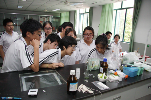 9月24日下午,中国科学院上海有机化学研究所 “魅力有机化学”科普拓展课程在上海市零陵中学正式开课。第一堂课围绕化学世界中的“察言观色”展开,上海有机所科普志愿者,来自生命有机化学国家重点实验室的郑庆飞、吴竹华、林芝精心准备了两个颜色变化的实验,让同学们深深地感受到化学世界的奇妙之处。