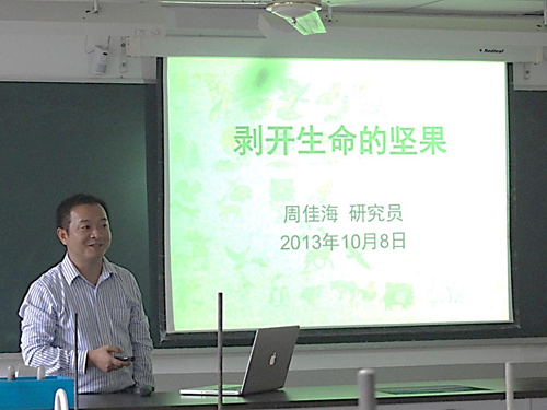 10月8日下午,中国科学院上海有机化学研究所“魅力有机化学”科普拓展课程在上海市零陵中学再次开课。此次由生命有机化学国家重点实验室周佳海研究员授课,主题为“剥开生命的坚果---分析化学漫谈”。