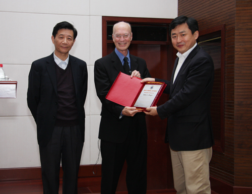 11月13日,美国斯克利普斯研究所(The Scripps Research Institute) 化学系主任Dale L. Boger教授来上海有机所访问并作汪猷科学讲座,所学术委员会主任林国强院士主持了讲座活动。上海有机所所长丁奎岭向Boger教授颁发了汪猷科学讲座纪念牌。