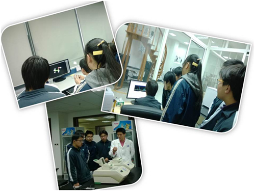 在实验室里,谢兴巧博士利用电脑软件为大家搭建了生活中常见物质的分子结构模型,从形如小狗的乙醇模型到让人眼花缭乱的核糖体结构模型,由简单到复杂,由小分子到大分子甚至超大分子,向同学们展示了结构生物学的精彩世界,同学们认识到从结构中能够很直观的观察到分子中的每一个原子的空间分布。陈小芳同学则指导同学们观察显微镜下的蛋白质晶体,看到显微镜下一颗颗形如钻石的五彩晶体,同学们都感到十分兴奋。通过进一步的介绍,同学们了解到,得到这些在空间排列中具有一定规则的几何外形的蛋白晶体之后,才能用X射线衍射的方法,记录和分析衍射数据,从而得到蛋白晶体的数据,通过解析得到各种复杂的结构。