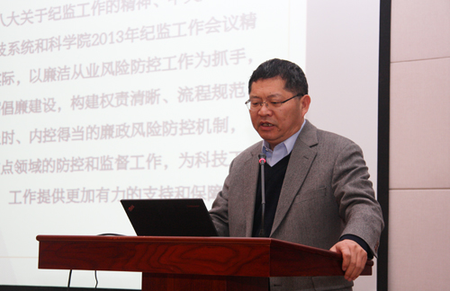 纪委书记马大为同志代表纪委,作了2013年工作总结和2014年工作计划的报告。2013年纪委以上级纪监工作精神为指导,以廉洁从业风险防控工作为抓手,加强作风建设与反腐倡廉建设、构建廉政风险防控机制,加强重点领域监督工作,为科技工作保驾护航。他结合纪委工作面临的新形势以及存在问题,介绍了纪委2014年“五个抓”工作计划,即抓宣传教育、抓监督检查、抓风险防控、抓党风廉政、抓制度建设。