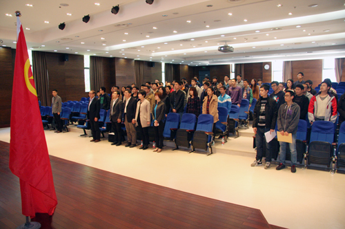 张翌翀、孙迪分别代表市科技团工委和上海分院团委致辞,张翌翀在讲话中强调当前青年在整个科研队伍中的比重逐年上升,希望新一届团委能做到工作前移,保持积极推优的优良传统;工作上移,响应上级团委的号召,顶天立地强自身同时增强与中科院系统外科技青年的交流;工作下移,善于发现基层中的高手和能人;工作外移,承担起科普宣传的责任,塑造科技人科技精神。也希望有机所的青年敢于有梦、勇于追梦。孙迪在讲话中希望新一届团委在工作中能体现中科院团委的特色,抓好团委自身建设、把握当前团工作的态势,积极运用新媒体等手段创新工作方式,开创团工作的新局面。