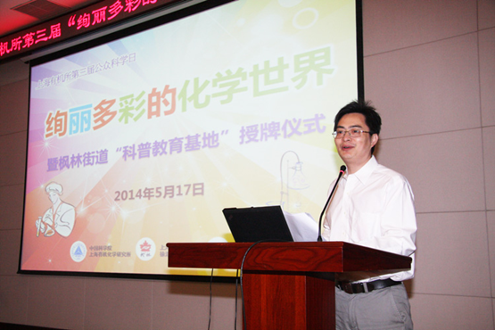 5月17日,以“绚丽多彩的化学世界”为主题的2014年度上海有机所公众科学日暨枫林街道“科普教育基地”授牌仪式在中国科学院上海有机化学研究所君谋楼举行。