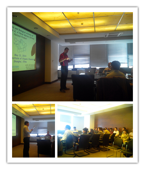 应上海有机所青年创新促进会邀请,美国西南医学中心Jef K. De Brabander教授近日访问了上海有机所,并作了题为“Synthesis and Biological Activity of Mangrolide A, A Novel Marine-Derived Natural Product”的学术报告。上海有机所青促会会员、部分青年科研人员及研究生近50人参加了现场交流。会后De Brabander教授与赵刚、李超忠、马大为、李昂、孙炳峰等学者进行了进一步交流。