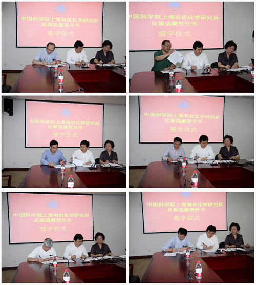 报告会后,所领导还与各实验室负责人签订了反腐倡廉责任书,要求研究室负责人带头执行廉政规定,自觉遵守科研道德,对研究室成员进行反腐倡廉教育、职业道德教育,切实对业务范围内和所负责的科研活动中的反腐倡廉工作承担起管理和监督责任。