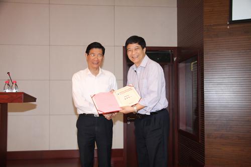 林国强院士向唐本忠院士颁发有机所交叉学科讲座证书