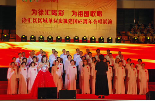 9月20日,为庆祝建国65周年、建设“美丽徐汇”唱响主旋律,上海有机所45名离退休同志和部分在职职工参加了 “为徐汇喝彩,为祖国歌唱”徐汇区区域单位庆祝建国65周年合唱展演。