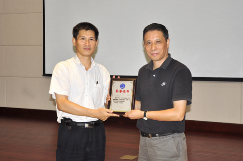 詹文龙为沈兆雷颁发荣誉证书
