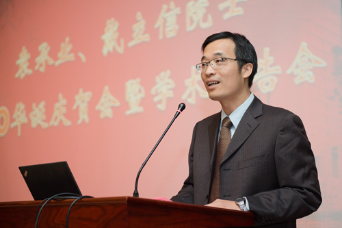 王国洪博士、游书力研究员分别作为两位院士的学生代表发言,表达了对恩师的感激与祝福。专程从美国前来的王国洪博士回忆到,袁先生在科研中对学生悉心指导,在生活上热心帮助,先生不仅是他的良师益友,更像是自己的家人。游书力研究员感慨地讲述了与戴先生深厚的师生情谊,戴先生在生活中对待学生如慈父,在科研方面又是一名严格的导师,先生严谨治学的科研作风、一丝不苟的工作态度,对待人生的乐观主义精神,都值得我们年青人学习。