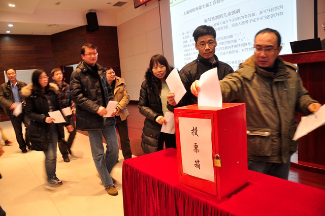 大会分预备会议、主席团会议和正式会议三个阶段进行。与会代表听取了工会副主席吕长贵同志所作的的第六届工会工作报告和经审委主任王建国同志所作的第六届工会经费审查委员会工作报告。根据会议议程,选举产生了上海有机所第七届工会委员9位:邓平、杜淑霞、余冰、杨军、胡金波、赵刚、秦聿昌、游书力、缪琳;第七届经审委委员3位:刘国生、杜淑霞、陆凯。余冰代表新当选的两委委员对大家的信任表示衷心感谢,也特别表达了对上一届工会的谢意,认为上一届工会开创了有机所工会工作的新局面,为新一届工会工作得以顺利开展做了良好的铺垫。新一届工会将继续本着服务职工的宗旨,做好联系研究所和群众的桥梁和纽带, 牢记责任和使命,凝聚职工,促进和谐。