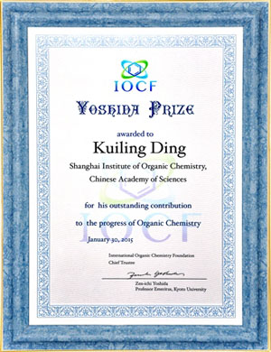 1月30日第一届Yoshida Prize Symposium会议在日本京都举行。上海有机所丁奎岭研究员作为嘉宾应邀出席本次学术活动,并被授予第一届Yoshida Prize。大会上,丁奎岭还应邀作了题为Chiral Catalyst Evolution: Rational Design and Serendipity的获奖报告。