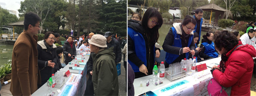 虽然天空飘着绵绵细雨,但活动现场人潮涌动,体现出暖暖的春意。年青的志愿者第一小分队用自己掌握的化学专业知识,为社区居民提供水质监测、生活中的化学等等科普宣传咨询。第二小分队带着慰问品来到了社区孤寡老人家中,为他们送去了元宵节的祝福。