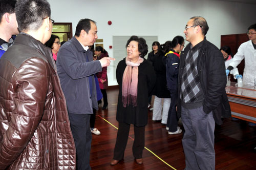 首先,王智勇一行参观了上海有机所的化学趣味实验拓展课:来自金属有机化学国家重点实验室、生命有机化学国家重点实验室和中科院有机功能分子合成与组装化学重点实验室的科普志愿者们,为西南位育中学的学生们精心准备了9个颇具特色的趣味化学实验——生活中的维生素、酸碱心灵美、水质检测、聚合物拉丝、神奇的分子模拟、谁灭了蜡烛、滴水成冰、颜色秋千、浴水重生,志愿者们耐心讲解示范,生动地揭示了化学世界的奥秘。在志愿者们手把手的带教下,学生们饶有兴趣地动手实验,整个课堂活跃有序,化学反应过程中产生的颜色和物质形态的变化引起了大家强烈的兴趣和好奇。