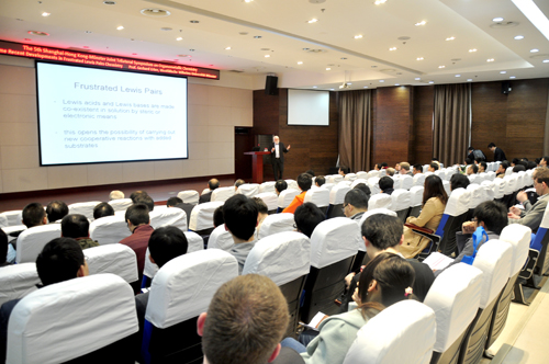 丁奎岭在开幕式上致辞,表达了对与会专家、学者的热烈欢迎和诚挚感谢。本次会议邀请了来自德国、中国以及中国香港地区的34名专家学者作精彩的学术报告,主要围绕金属有机化学前沿领域进行交流与探讨,突出金属有机化学领域的最新发展和未来态势。整个会议反响热烈,很多听讲的学生和科研人员表示有这样的机会了解学科前沿的相关知识受益匪浅,同时结合自己在科研工作过程中遇到的问题与专家进行了积极沟通和交流。